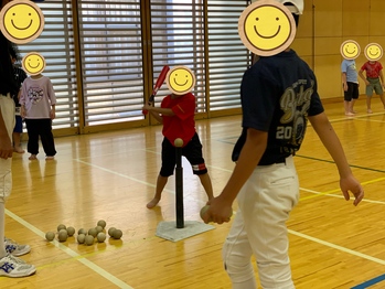 といった声かけをもとに、子どもたちは相手の胸に向けてコントロールよくボールを投げられるようになったり、遠くまで打てるようになったりと、大きな成長が見られました。