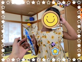 9月29日は「食欲の秋」・・・アルミフォイルを使って「サンマ」作りをしました。新聞紙を細長く丸めたところにアルミフォイルをかぶせ、青や黄色のマーカーを使って腹や背に色を塗りました。見本を見ながら、目をどこに貼ればいいかを考えながら貼ることができていました。本物のサンマのように上手に出来上がったサンマに子どもたちも大満足したようです。旬の食べ物は栄養価が高いと言われます。魚が苦手なお子様も増えていますがこれを機に是非、秋の味覚、サンマを味わってもらえたら嬉しいです。